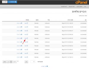 בעצם ניתן לשחזר בקליק את כל האתר ומערכת וורדפרס או קובץ מסוים או רק מסד נתונים בפנל האחסון Cpanel.