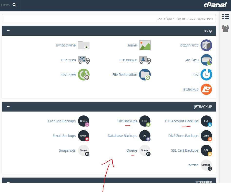 כנסו לפנל שלכם Cpanel וחפשו את אזור הגיבויים JetBackup5